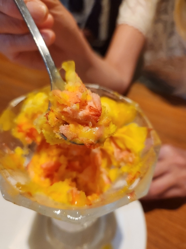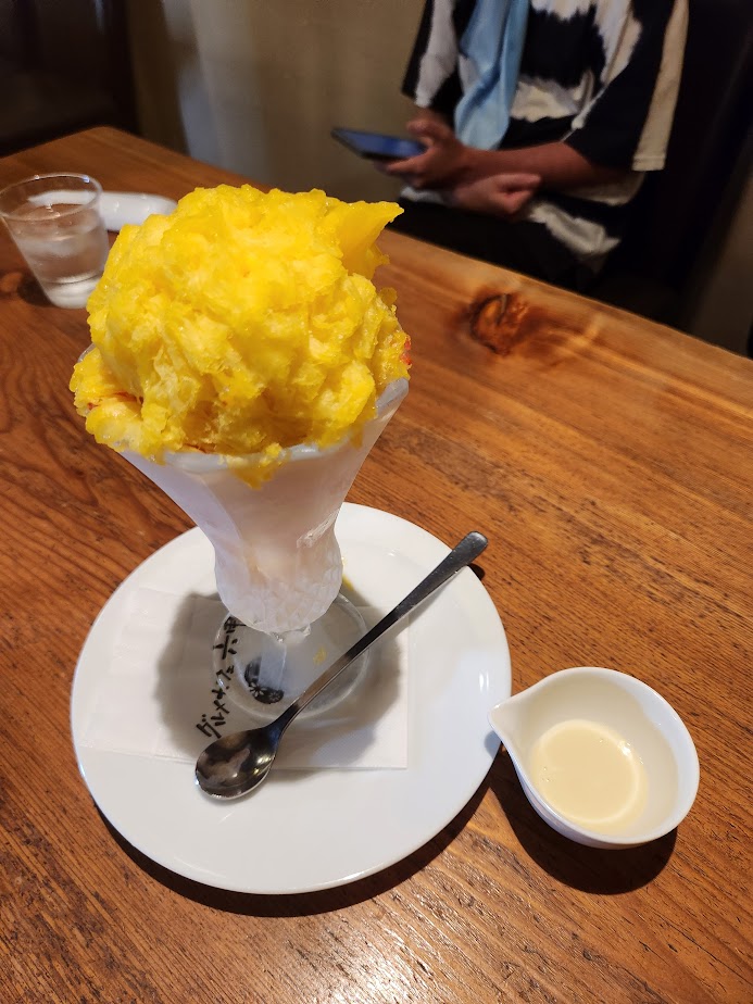 普通のかき氷は氷を削って蜜をかけると思うのですが、こちらはすでに味のついた氷を削っています。